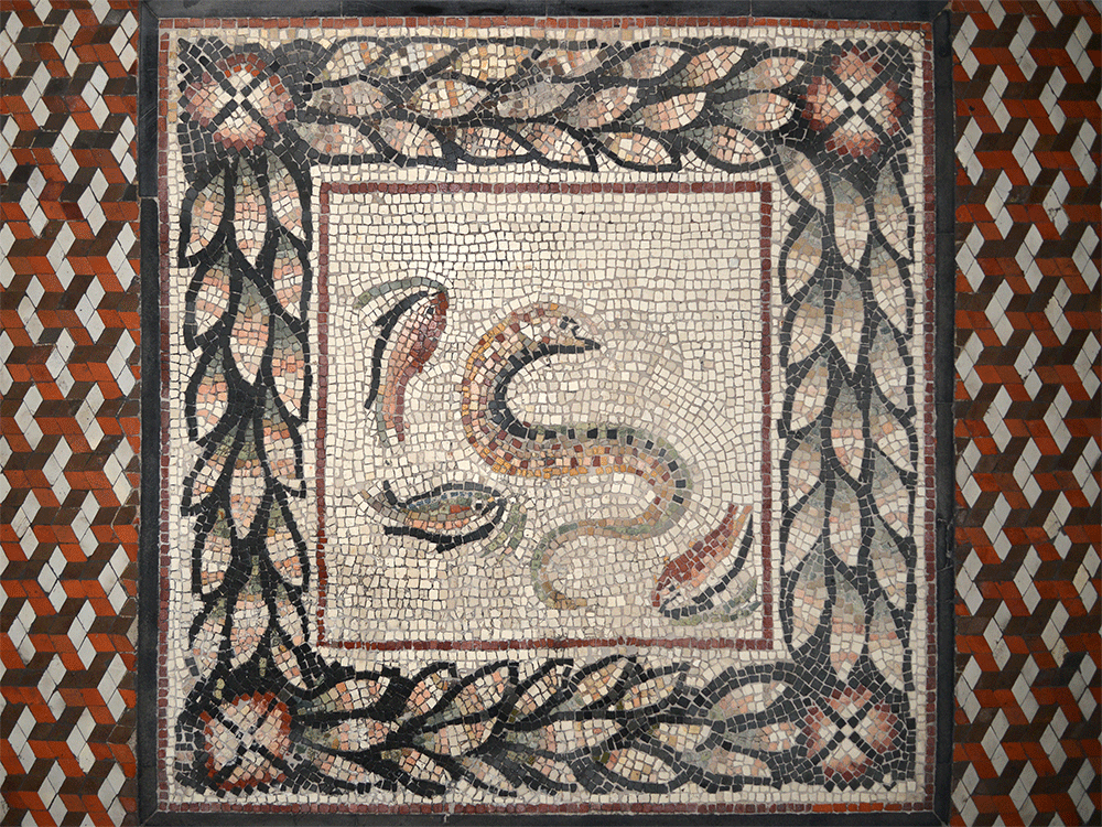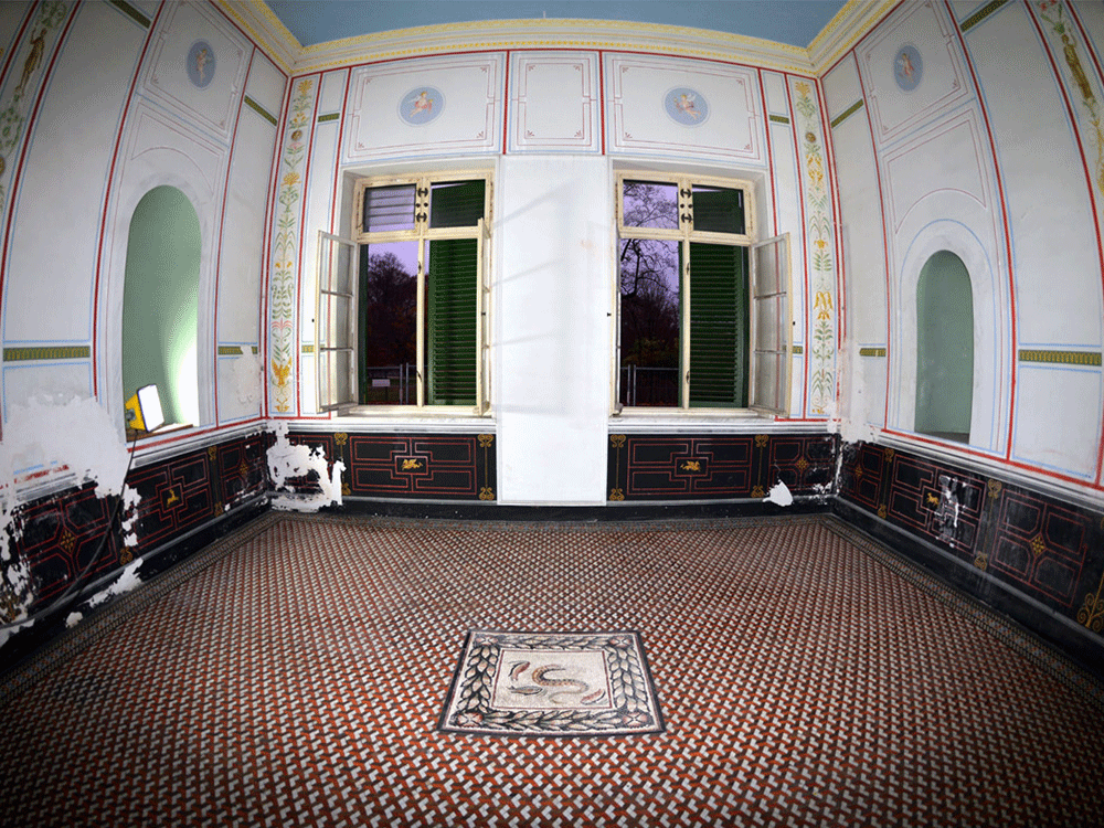 Wohl erst 1848 bekam die Neugierde die Funktion eines Sammlungsbaus. In die Vorhalle wurden nun antike Mosaiken, Wandmalereifragmente und Inschriftentafeln eingefügt. Die Mosaikfußböden sind Zeugnisse der Mosaikherstellung der ersten Hälfte des 19. Jahrhunderts.