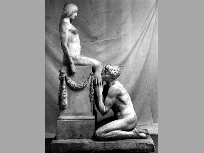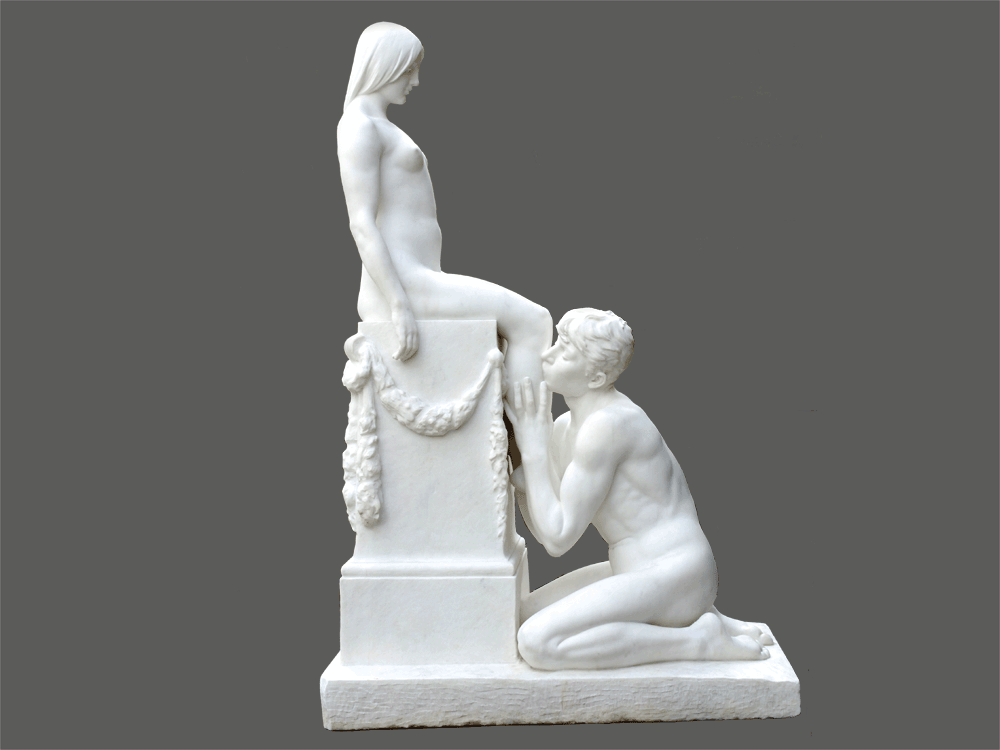 Die lebensgroße Figurengruppe „Adoratio – Anbetung“ wurde 1907 vom norwegisch-dänischen Bildhauer Stephan Abel Sinding geschaffen. Sie besteht aus weißem Marmor, am Podest befindet sich die Künstlersignatur „Stephan Sinding sc. 1907“. Zwei identische Werke befinden sich in der Ny Carlsberg Glyptpthek, Kopenhagen und im Schlosspark Thürmsdorf in der Sächsischen Schweiz.